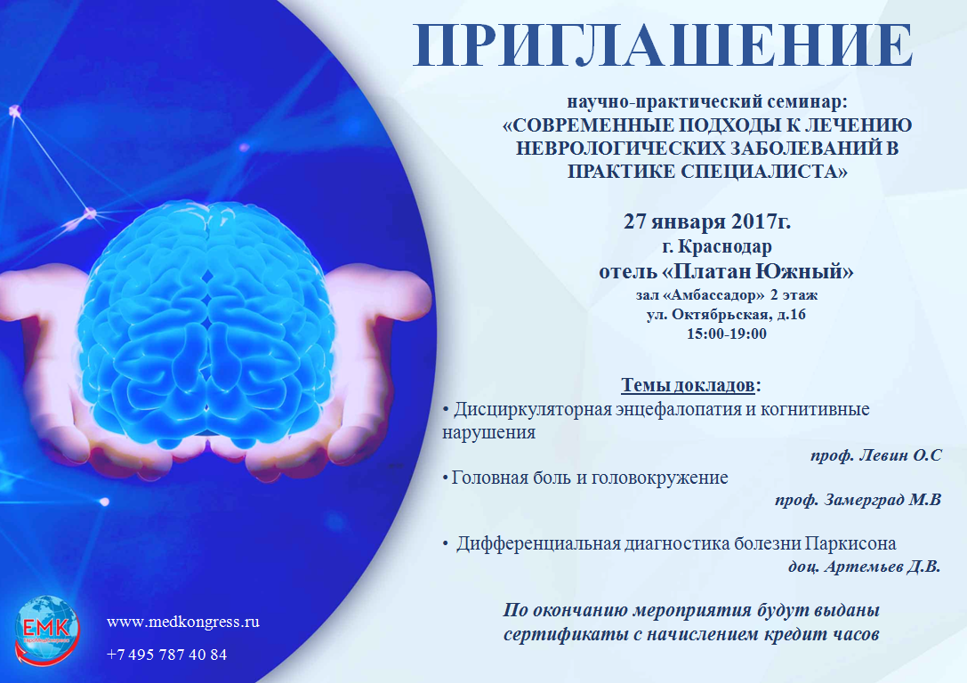 27 января 2017 года в Краснодаре состоится научно-образовательная программа для неврологов и врачей общей практики России "Современные подходы к лечению неврологических заболеваний в практике специалиста"