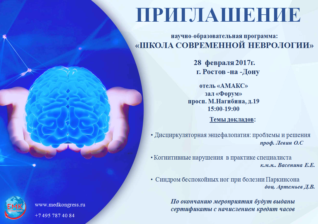 28 февраля 2017 года состоится научно-образовательный семинар "Школа современной неврологии"